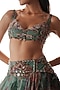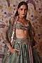 Featuring a green lehenga in silk organza base with floral print and hand embroidery. It is paired with an embroidered bralette and a dupatta. Accentuate it with zircon dangler earrings, metallic heels and a potli bag for destination wedding, sangeet or engagement ceremonies.