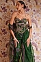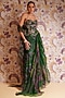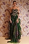 Featuring a green corset in silk organza base with print and hand embroidery. It is paired with a draped skirt. Accentuate it with zircon dangler earrings, metallic heels and a polti bag for a festive occasion, sangeet or destination wedding.