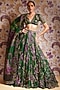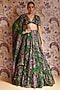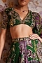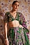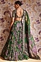 Featuring a green lehenga in silk organza base with print and hand embroidery. It is paired with an embroidered blouse and a dupatta. Accentuate it with zircon dangler earrings, metallic heels and a potli bag for destination wedding, sangeet or engagement ceremonies.