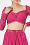 Featuring a hot pink lehenga in organza, net, and shantoon base. It is paired with a matching zardosi embroidered blouse and a dupatta.