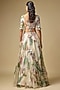 Featuring an ivory lehenga in organza and moss crepe base with print and embroidery. It is paired with a blouse and dupatta. Accentuate it with statement jewellery and heels for festive occasions or wedding ceremony.