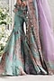 Mahima Mahajan presents a jade green peplum kurta in silk organza base with embroidery and print. It is paired with floral printed sharara pants and an embroidered dupatta. Own the spotlight in block heels and polki earrings that amplify your look, perfect for weddings or festive ceremonies.