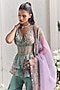 Jade Green Silk Organza Floral Printed Sharara Set