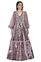 Featuring a lilac anarkali in velvet and organza base with nalki, cutdana, dabka and mukaish embroidery. It has gathered sleeves and shantoon underlining.