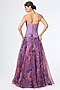 Featuring a lilac corset gown in organza base with embroidery, print and adjustable tie-ups. Accentuate it with statement jewellery and heels for cocktail or wedding ceremonies.