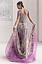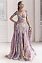Mahima Mahajan presents a lilac lehenga in silk organza base with floral print. It is paired with an embroidered corset top and an embroidered dupatta. Turn heads in block heels and polki earrings that magnify your lehenga set, perfect for weddings or sangeet ceremonies.