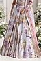 Mahima Mahajan presents a lilac lehenga in silk organza base with print. It is paired with a corset blouse and an embroidered dupatta. Turn heads in block heels and polki earrings that magnify your lehenga set, perfect for weddings or sangeet ceremonies.