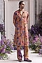 Featuring an amber yellows kurta in linen satin base with print and signature MM buttons. It is paired with pants. Elevate the look with minimal accessories and classic mojaris for haldi ceremonies, radiating regal grandeur.