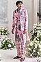 Featuring a blush pink sherwani in linen satin base with print and hand embroidery. It is paired with a kurta and trousers having pintucks detail. Style it with a heritage brooch and regal safa, perfect for sangeet ceremonies or an heirloom look, rooted in tradition and elegance.