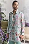 Featuring a jade green quilted bundi jacket in linen satin base with print and hand embroidery. It is paired with a kurta and trousers. Accessorize it with a statement watch, pocket square and loafers for mehendi ceremonies to fuse tradition with urbane charm.