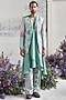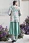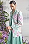 Featuring a jade green indowestern jacket in linen satin base with print and hand embroidery. It is paired with an angrakha kurta and quilted trousers. Accessorize it with a statement watch, pocket square and loafers for mehendi ceremonies to fuse tradition with urbane charm.