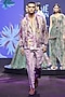 Featuring a steel lilac quilted jacket in satin organza base with print. Style it with pant set, shoes and a sleek watch for a festive occasion, cocktail, destination wedding or sangeet ceremony.