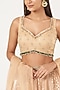 Featuring a nude lehenga in chanderi base with embroidery. It is paired with a matching embroidered blouse and an organza dupatta having tassels.