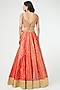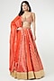 Featuring an orange lehenga in banarasi chanderi base with embroidery. It is paired with a matching hand embroidered blouse and an organza dupatta having gota tassels.