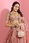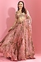 Featuring a pink lehenga in organza and raw silk base with embroidery. It is paired with an embroidered blouse and an embroidered dupatta. Accentuate the designer lehenga with swarovski or pearl jewellery, embellished heels and a potli bag for a traditional look, Perfect wear for your wedding, sangeet or engagement ceremony.