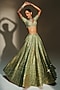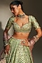 Pista Green Banarasi Silk Chanderi Hand Embroidered Lehenga Set