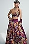 Featuring a purple lehenga in satin organza and shantoon base with embroidery. It is paired with a matching blouse and an organza dupatta.
