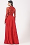 Featuring a red anarkali in georgette and soft net base with embroidery and ruched sleeves.