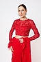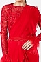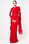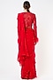 Featuring a red ruffled saree in georgette and net base. It is paired with a matching embroidered blouse, a belt, and a lycra petticoat.