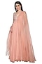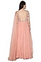 Featuring a rose pink anarkali in net, georgette and organza base with nalki, cutdana, dabka and mukaish embroidery. It has an attached drape and shantoon underlining.