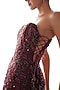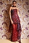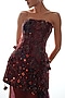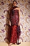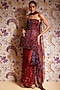Featuring a royal red sculpted tube top in silk organza base with print and hand embroidery. It is paired with an embroidered draped skirt and a dupatta. Accentuate it with zircon dangler earrings, metallic heels and a polti bag for a festive occasion, sangeet or destination wedding.