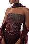 Featuring a royal red corset in silk organza base with print and hand embroidery. It is paired with a draped skirt and a dupatta. Accentuate it with zircon dangler earrings, metallic heels and a polti bag for a festive occasion, sangeet or destination wedding.