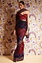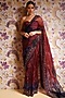 Featuring a royal red pre-draped saree in silk organza base with print and hand embroidery. It is paired with an embroidered corset. Accentuate it with zircon dangler earrings, metallic heels and a polti bag for a festive occasion, sangeet or destination wedding.