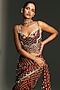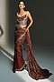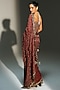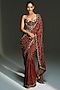 Mahima Mahajan presents a sindoori red pre-draped saree crafted in banarasi silk chanderi and banarasi georgette base with hand embroidery. It is paired with a golden embroidered blouse. Accentuate the look with chunky earring, an embellished potli bag and block heels for a perfect a wedding, sangeet or engagement ceremonies.