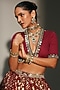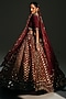 Mahima Mahajan presents a sindoori red kalidar lehenga crafted in banarasi silk chanderi base with a dragonfly logo on the waist belt and hand embroidery. It is paired with an embroidered blouse and a silk organza dupatta. Style it with striking emeralds or heirloom polki, a handcrafted potli, and elegant heels to complete the quintessential bridal moment.