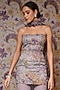 Featuring a steel lilac short tube tunic in silk organza base with print and hand embroidery. It is paired with embroidered mesh pants and a dupatta. Accentuate it with zircon dangler earrings, metallic heels and a polti bag for a festive occasion, sangeet or destination wedding.