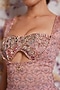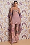 Featuring a blush pink short kurta in silk organza base with print and hand embroidery. It is paired with an embroidered bustier, straight pants and a dupatta. Accentuate it with zircon dangler earrings, metallic heels and a polti bag for a festive occasion, sangeet or destination wedding.
