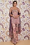 Steel Lilac Silk Organza Hand Embroidered Short Tunic Set