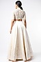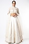 Featuring a white lehenga in madrit, net, and shantoon base with embroidery. It is paired with a matching blouse and a dupatta.
