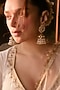 Featuring a pair of gold finish jadau jhumka earrings studded with golden stones, set in copper. Perfect for weddings, festive celebrations and grand occasions.