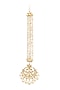 Featuring a gold finish maangtikka studded with jadau kundan polki and pearls, set in copper. Add a touch of sparkle to your ensemble, perfect for weddings or festive celebrations.