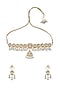 Featuring a gold finish necklace studded with kundan polki and sea green beads, set in copper. It is paired with a matching pair of earrings.