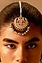Featuring a gold finish handmade jadau maangtikka studded with kundan polki, onyx beads and pearls, set in copper. Perfect wear for festive occasions or wedding ceremonies.