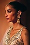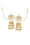 Featuring a pair of gold finish jhumka earrings studded with mint drops, set in copper. Perfect for festive occasions, weddings or cultural events, this jewellery is a wardrobe must for those who love to shine effortlessly.