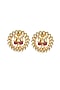 Featuring a pair of gold finish lotus earrings studded with pachi kundan polki and pearls, set in copper. Add a touch of sparkle to your ensemble, perfect for weddings or festive celebrations.