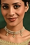 Featuring a gold finish choker necklace studded with kundan polki and pearls, set in copper.