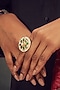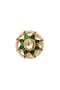 Featuring a gold finish green ring studded with kundan polki and pearls, set in brass.