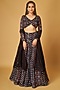 Black Modal Satin Ajrakh Printed & Mirror Embroidered Lehenga Set