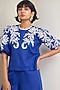 Featuring a blue top in cotton linen base with short sleeves and embroidery. It is paired with flared pants. Accentuate it with zircon jewellery, a clutch and heels for a festive occasion, sangeet or cocktail ceremony.