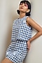 Featuring a blue and white sleeveless checkered top in cotton base with embroidery. It is paired with a skirt. Accentuate it with drop earrings and block heels for a stylish ensemble, ideal for evening soirees.