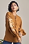 Brown Cotton Linen Floral Embroidered Top