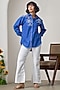 Featuring an electric blue shirt in cotton linen base with pearl machine embroidery. Style it with pants, hoop earrings and flats for casual outing, office, get-together or brunch wear.