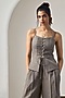 Featuring a grey strappy corset in matka cotton base. It is paired with pants. Accentuate it with zircon jewellery, a clutch and heels for a festive occasion, sangeet or cocktail ceremony.