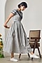 Featuring an ivory and black striped maxi dress in cotton base with lace embroidery. Accentuate it with statement earrings and heels for evening wear.