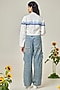 Featuring an ivory crop jacket in poplin base with blue machine embroidery. Style it with pants, stud earrings and flats for casual outing, office, get-together or brunch wear.