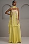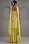 Featuring a lemon yellow kurta in net base with hand and machine embroidery. It is paired with georgette sharara pants and a georgette dupatta. Accentuate it with statement jewellery and heels for festive occasions or haldi ceremonies.